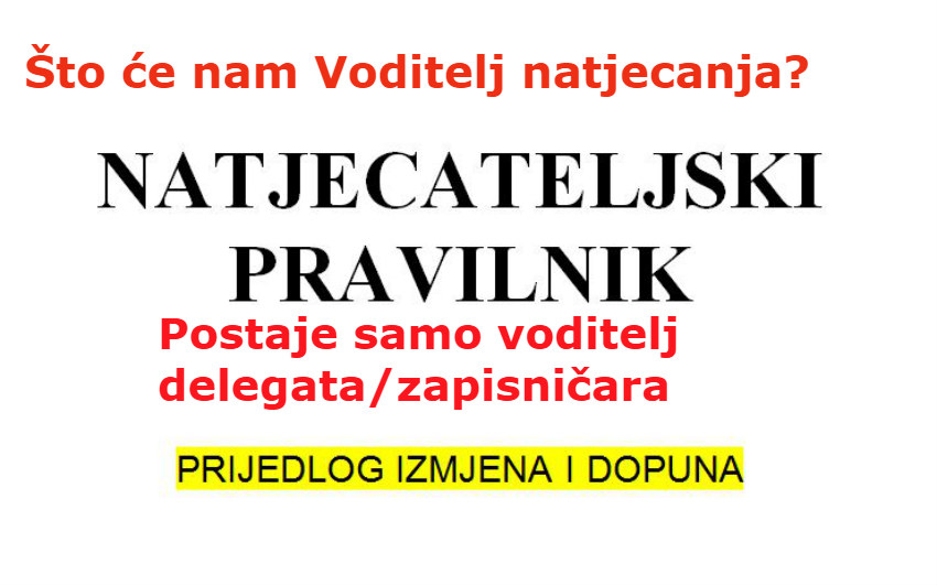 Nakon Registracijskog, pogledali smo i prijedlog izmjena Natjecateljskog pravilnika na koji do 10. lipnja klubovi mogu iznijeti sugestijje.Onako na prvu, Voditelj natjecanja postaje nebitna osoba, Izvršni odbor, kao što je i u većini saveza, ima više posla. A pravilnik nije više usklađen sa Stegovnim pravilnikom.